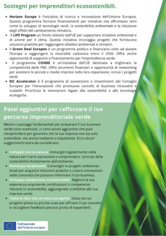 opportunità di supporto e finanziamento per l'imprenditoria verde.